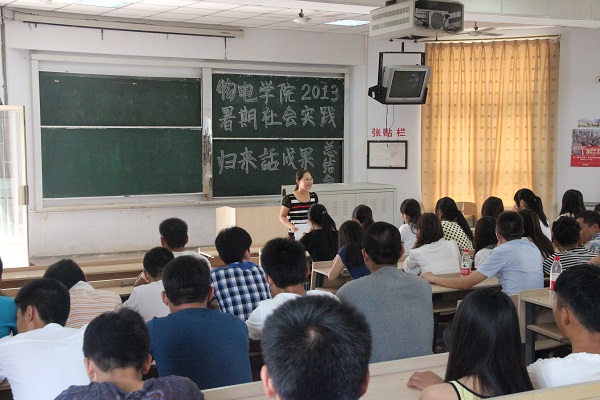 为进一步提升物理与光电工程学院学生的综合素质,推动学院社会实践工作的长期有效开展。2013年9月9日,物理与光电工程学院在5210教室召开了2013年暑假“三下乡”实践归来话成果社会实践报告总结交流会,交流会由学院团总支副书记张芳芳老师主持召开。物电学院11级、12级全体同学参加了此次交流会。