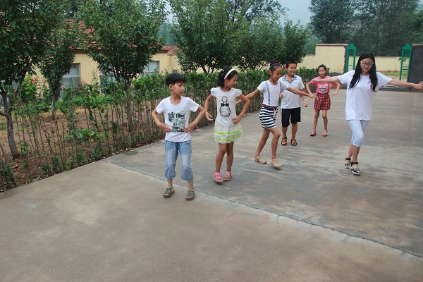两名志愿者负责6个孩子的舞蹈课教学,“一二三四五六七八……”,喊着响亮的拍子,带着孩子们一个拍一个拍地学习脚步,再一点点加上手上的动作,“你们的领悟力真好,学得又很认真,现在跳的已经有模有样了。”志愿者刘老师一脸笑容,忍不住称赞起孩子们。