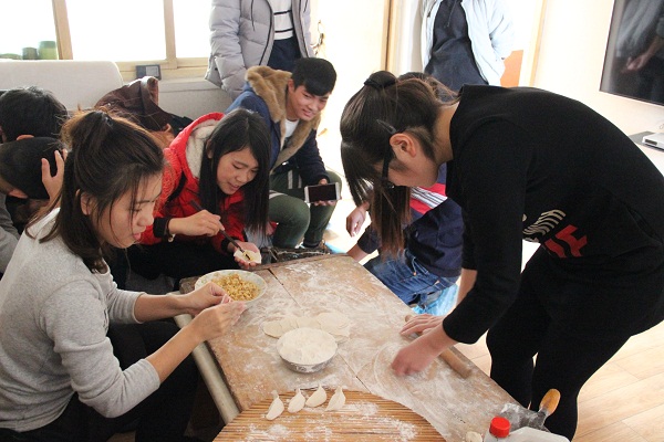 志愿者们敲门后,听到宋大爷高兴地应答声。今日前来看望大爷的还有其他院校的同学与两位义工大哥。满满一屋子的人让宋大爷的家更加温暖。临近中午,服务队女生决定为宋大爷包上一些饺子,在征得宋大爷的同意后在厨房里开始忙活。无从下手的男生们在一旁陪宋大爷打起了扑克牌,一群人说说笑笑,融洽而又不失关怀,明亮的笑容一直刻在宋大爷的脸上。在大家欢笑之时,一名志愿者发现了放在一边的象棋,恰好宋大爷手也痒了,两人切磋起来,宋大爷的笑容变得认真严肃。三局均以宋大爷的胜利而告终。而此时,饺子已经包好放入冷冻层,留着给大爷需要的时候吃。志愿者们也该离去了,宋大爷依依不舍同服务队告别,留给同学们灿烂的笑,坚定而温暖。
