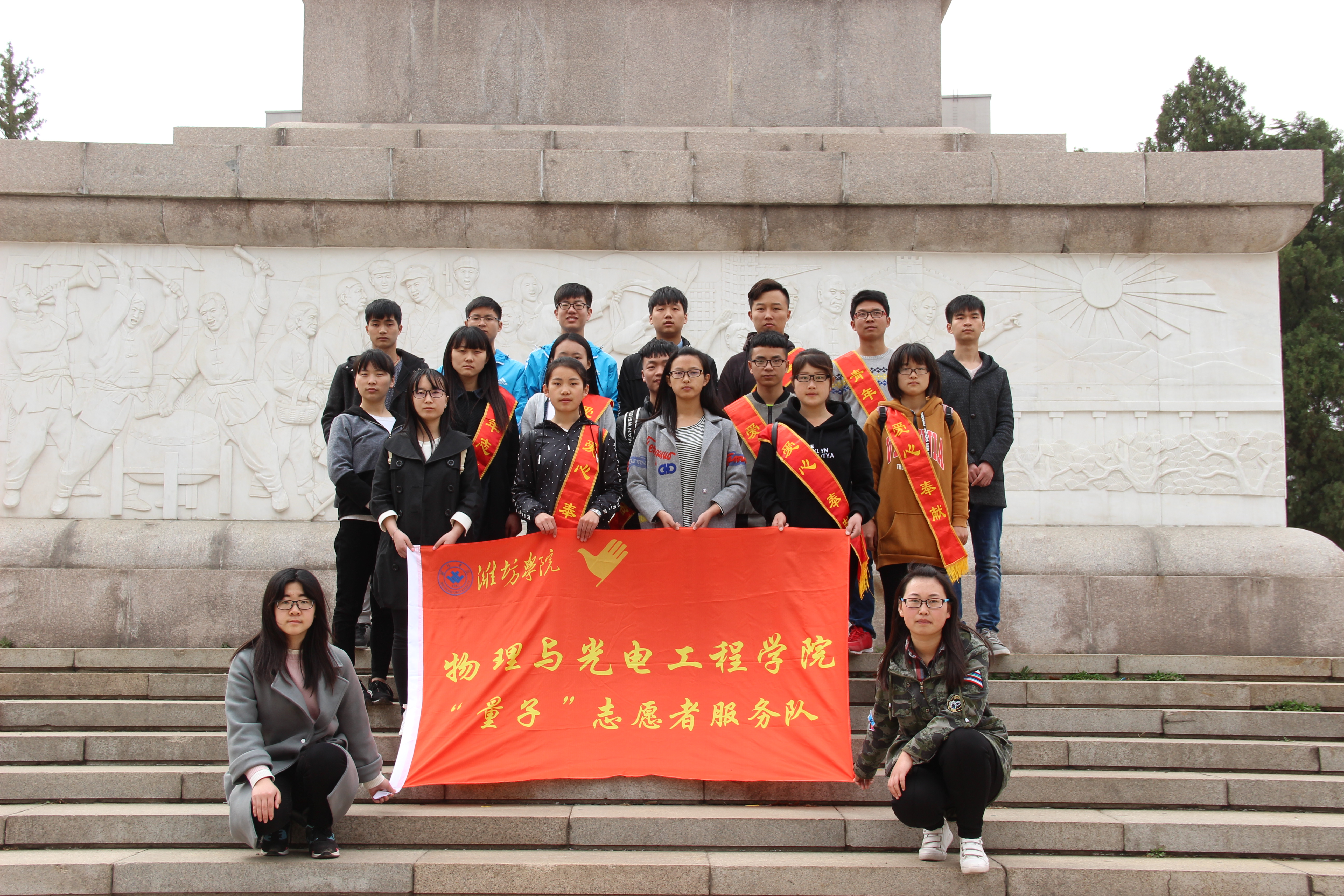 “清明节”是中国人缅怀前人的日子,为了纪念这个有着深远意义的日子,引导大学生弘扬爱国主义精神,加强爱国主义教育。2017年4月4日上午8点,物理与光电工程学院量子志愿者服务队来到潍坊烈士陵园,开展了“缅怀先烈,继承遗志”清明扫墓志愿活动。