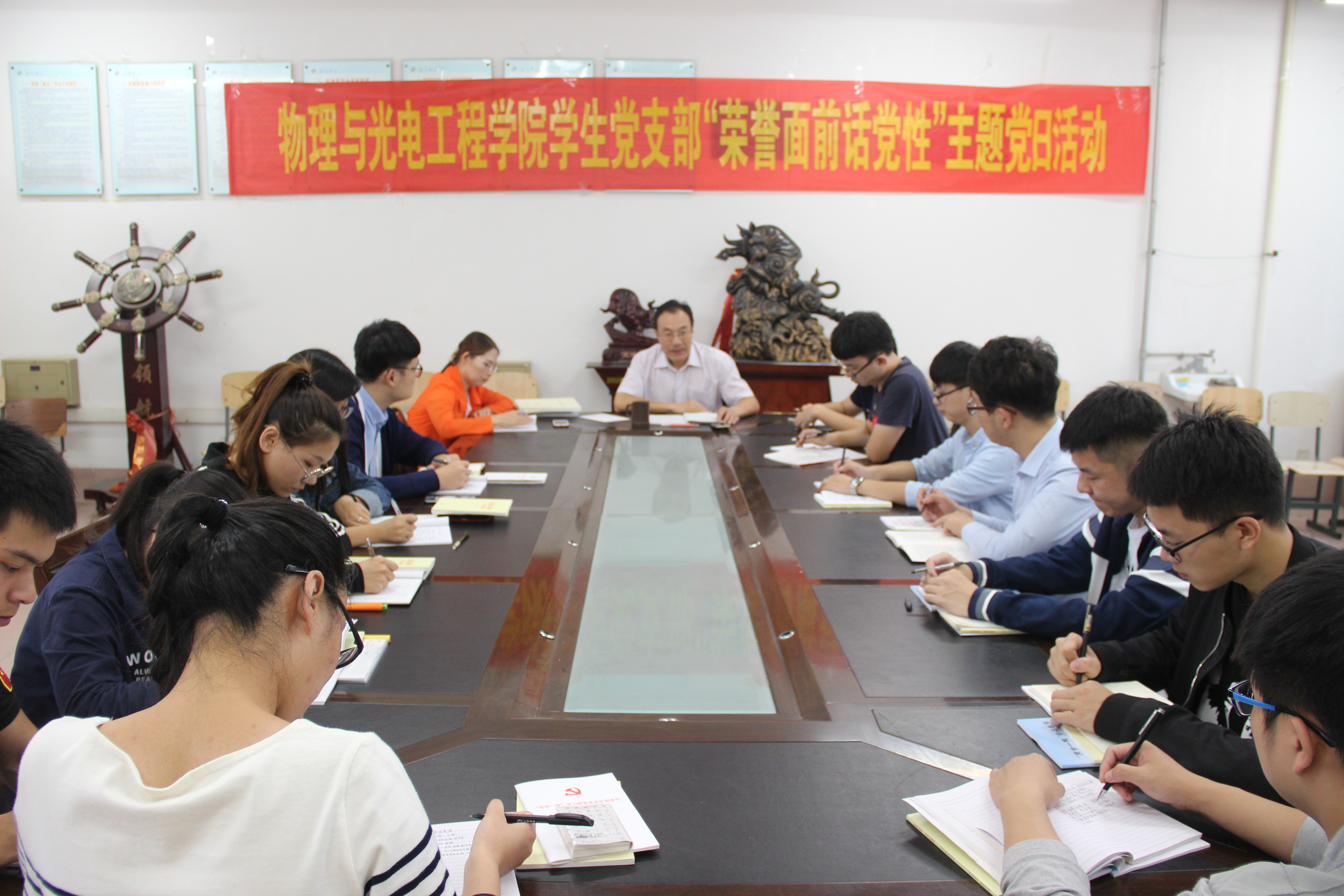 2017年9月30日,物理与光电工程学院学生党支部开展了“荣誉面前话党性”主题党日活动,每名学生党员就荣誉和利益面前如何把握党性原则作了交流发言,进行了深刻的党性分析,认真开展了批评与自我批评。物电学院学生党支部书记张芳芳主持交流会,学院党总支副书记贺志波参加了主题党日活动。