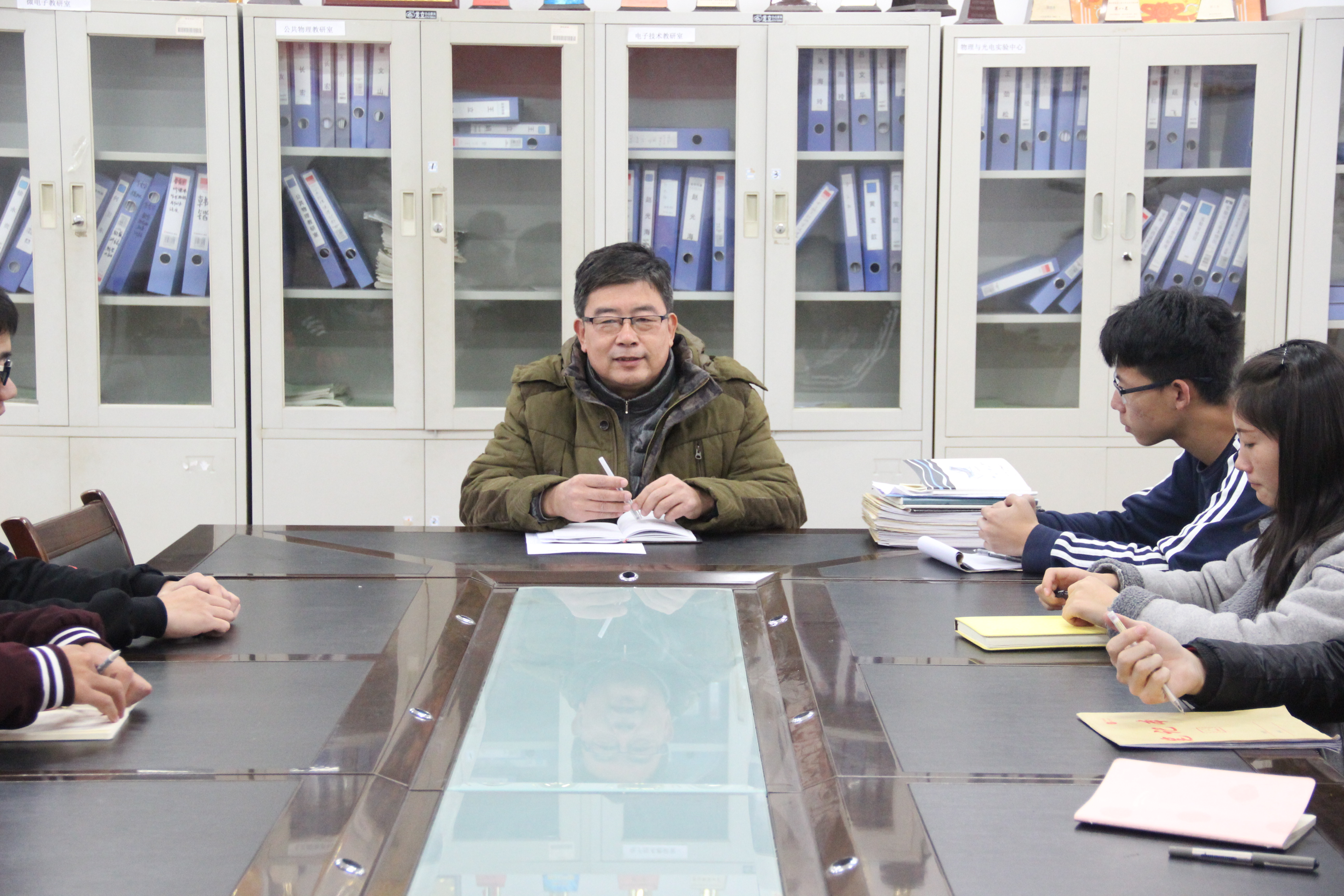 为进一步促进师生交流,了解并有效解决学生学习生活中的问题。物理与光电工程学院于2017年11月17日在明正楼5205教室召开师生面对面交流座谈会,本次座谈会由物电学院党总支书记仲明礼主讲,2017级部分同学参与。