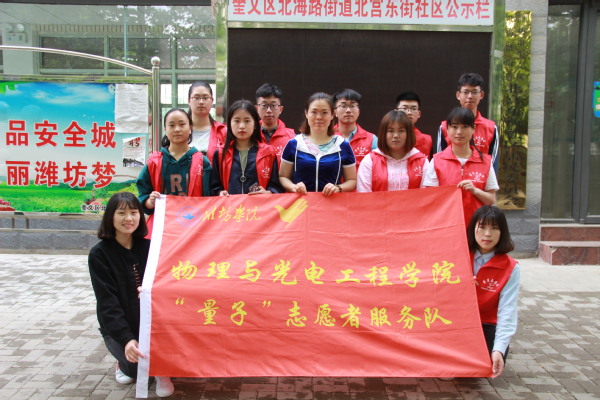 2018年5月20日,在这个意义非凡的日子里,物理与光电工程学院量子志愿者服务对联合2017级微电子团支部在北街社区开展了主题团日活动。虽然经过一晚淅淅沥沥的小雨,地面还有一点潮湿,但服务队副队长郑梦鸽依旧带领服务队踏上了志愿服务的道路,图书整理和“小广告”去除是他们即将迎接的两项艰巨任务。