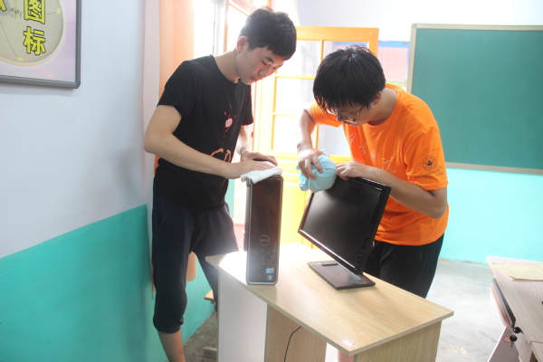 7月31日, 物理与光电工程学院“圆梦教育”社会实践服务队(五井镇),与山东省潍坊市临朐县五井镇茹家庄小学对口援赠十余台电脑,在经过长达近十天的准备,志愿者对电脑进行了一系列的整理、清洗,统工作计后,正式发往茹家庄小学,并在当地举行了简短的揭牌仪式。仪式后由志愿者帮助当地师生安装电脑、调试系统并对学生讲解教授了基本操作技巧。