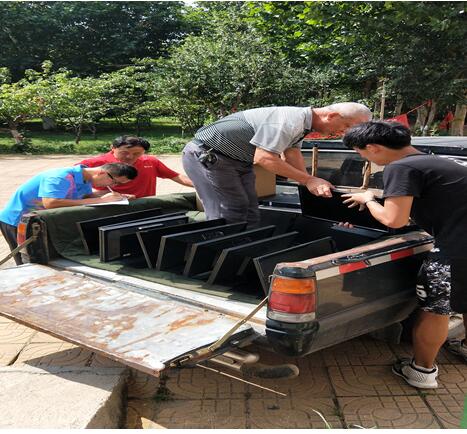 志愿者队员们将十余台电脑装车发送往茹家庄。