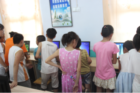 孩子们争先恐后地来到微机室体验“不一样”的学习方式。