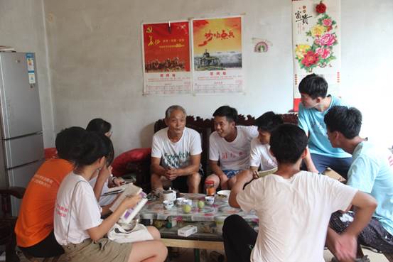 中国青年网潍坊8月5日电(通讯员 韩振仑)7月31日, 圆梦教育社会实践服务队(五井镇)来到临朐县五井镇茹家庄,计划开展为期十天的支教、调研与志愿服务活动,以实际行动助力精准扶贫,服务乡村振兴战略。茹家庄位于山东省潍坊市临朐县五井镇西南, 因四面环山、交通不畅,经济水平相对落后。村里多数青年人选择外出打工或居住,空巢老人与留守儿童较多。8月5日上午,队员们经村委会介绍来到了空巢老人史大爷的家中探望,并用实际行动送去关怀。
