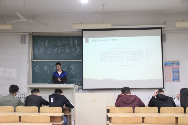 比赛以选手上台演讲的方式来分享自己关于某本书籍的体会,选手们声情并茂,语言富有感染力,PPT也做得十分精良。好多选手选择分享《平凡的世界》,从分析作者到概括书籍内容,选手们对书中人物性格的把握十分精准,有的观众可能没读过这本书,但是在选手们绘声绘色的分享下,让观众有想要去读这本书的冲动。例如,温肖肖同学在分析《平凡的世界》一书中贺秀莲这一角色时,说到“这样的女生可能是很多男生的理想恋人,我就是那很多男生中的一个。”台下响起了热烈的响声。王业飞同学所分享的《在大墙下的红玉兰》在本次读书会中格外吸引眼球,他重点强调了读完这本书自己的体会,结合自己入党积极分子的身份,把自己代入主人公,“如果我是他,我又会怎么选择呢?”“我可能会坚持以实事求是为原则,以爱国爱家为出发点,坚守真理,而这这就是这本书带给我的力量。”结合生活中的事例,给出了让观众会心一笑,连连赞叹的答案。