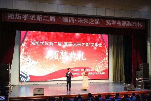 2018年12月7日, 第二届“晒福·未来之星”奖学金颁奖典礼在图书馆报告厅举行。“晒福·未来之星”奖学金是由 优秀校友曲金民先生捐资设立的。颁奖典礼由 学生处主办、物理与光电工程学院承办。 党委副书记王清明、山东鑫源金店有限公司董事长、物电学院82级校友曲金民先生作为颁奖嘉宾出席此次颁奖典礼,同时参加颁奖典礼的还有学生处和各学院党总支、学工办相关负责的同志。