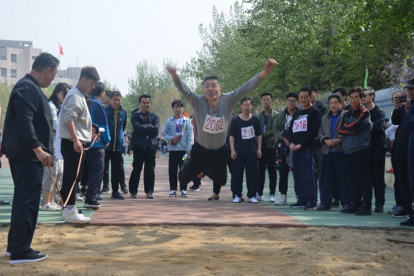下午的太阳毫不留情,让每一个人都充分感受到了它的热情。老师们顶着烈日,依旧奋斗在跳远的赛场上,将目光转移到运动场的西南角上,远远的便能看见代表物理与光电工程学院出赛的姜波和周立友两位老师积极地做着热身活动,赛场上老师脸上洋溢着自信的微笑,就如同在课堂上一样,自信满满。随着发号员一声令下,周立友老师双臂一划,屈膝将身体全部力量集中在一点,用双臂带动整个身体向前跳去,在空中留下一道弧线后完美落地,随后观众群中爆发出了激烈的掌声,同学们的阵阵喝彩声仿佛在宣告着胜利。最后,周立友和姜波两位老师都跳出了优异的成绩,为物电的学生树立了榜样。