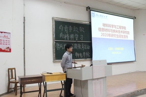 2019年5月15日晚,物理与光电工程学院在4109教室举行考研专业宣讲会。宣讲会特邀南京邮电大学材料科学与工程学院明东、卞临沂、曹大鹏三位老师为16、17、18级同学们做讲解,让学生进一步了解南京邮电大学的优良师资力量及高规格科研平台、继续深造或就业的前景。