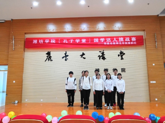 为弘扬儒家思想、传承国学文化,激发和培养同学们对国学知识的兴趣,加深同学们对中国优秀传统文化的理解,2019年5月23日下午,物理与光电工程学院参加了由 特教幼教师范学院在特教大楼四楼报告厅举办的“国学达人挑战赛”传统文化知识竞赛决赛,该活动由 团委主办,特教幼教师范学院承办。