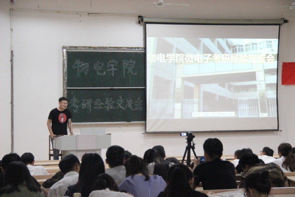 为加大力度搞好榜样示范引领活动,2019年5月29日晚,物理与光电工程学院在4109教室举办了微电子考研经验交流会。交流会特邀15级微电子专业牛浩然、王慧雯同学交流考研科目复习、择校择专业、时间规划、心态调整等方面的考研经验,16、17、18级部分同学参加。