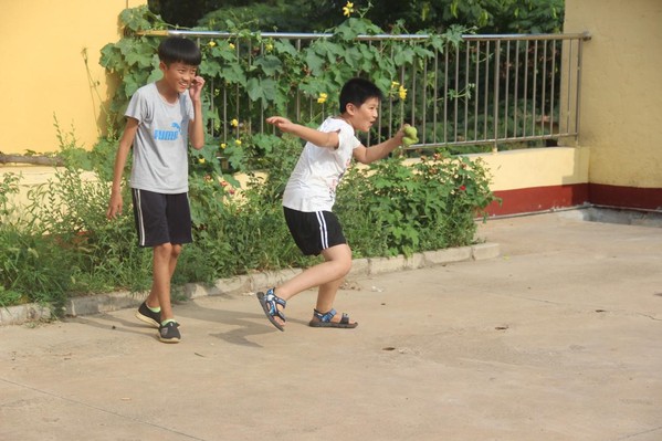 图为沙包游戏时学生接住沙包后喜悦的神情。假期中少有的体育活动让孩子们格外兴奋。