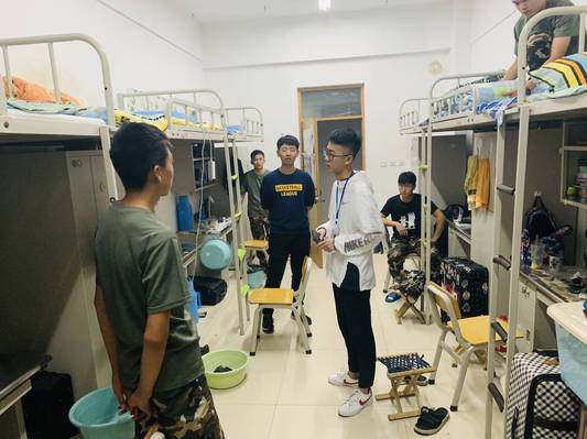 王誉博将男女分成两队,大家走进每一个新生宿舍,从宿舍卫生检查时间、检查项目及标准、宿舍卫生及安全问题等三个方面进行宣讲。在讲解宿舍安全问题时,为了让新生更好地了解宿舍安全的检查标准,对空插这一问题,王誉博给同学们演示了如何放置插排,并针对不同的情景向学生做了详细的讲解。在宣讲的同时,他也为同学们讲解了学生诚信档案的重要意义,并以此告诫同学们一定要牢记安全知识,不能在宿舍使用大功率器件,杜绝安全隐患。