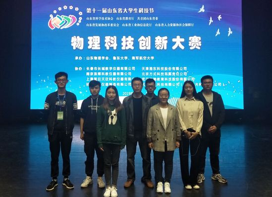 本次大赛由山东省科协、省教育厅、团省委、省发改委、省经信委、省人社厅联合主办,山东物理学会、鲁东大学、海军航空大学承办,共有来自全省31所高校,共计197支队伍,600余人参加比赛,我校派出了由物理与光电工程学院18名学生组成7支队伍参加赛事。经过激烈角逐,我校参赛的7支代表队,获得1项一等奖、4项二等奖和2项三等奖,赵加强、戴长志等老师获得优秀指导老师。