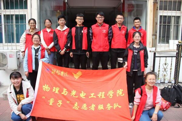 夕阳无限好,人间重晚情,为了弘扬中华民族敬老爱老的传统美德,给老人送去实实在在的温暖,同时提高青年大学生的社会实践能力,2019年11月2日,物理与光电工程学院量子志愿者服务队去往馨悦老年公寓开展“以我青春,助老为乐”的志愿服务活动。