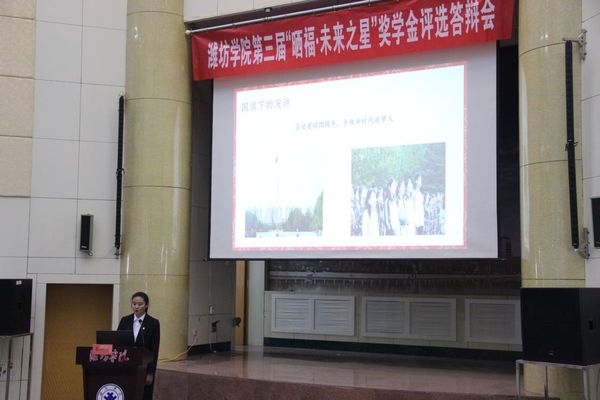 2019年11月14日下午,由 学生工作处(武装部)主办, 物理与光电工程学院承办的第三届“晒福·未来之星”奖学金终评答辩会在行政楼一楼报告厅举行。 党委宣传部部长单振涛、学生工作处处长李学军、团委副书记徐加金、财务处副处长孙军、物理与光电工程学院副院长赵加强到场担任评委,各二级学院学生代表到场参加。
