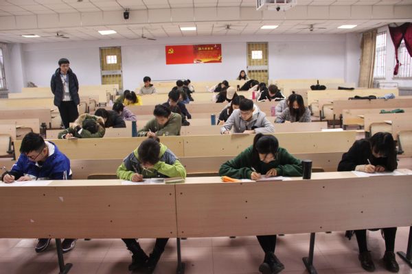 考试开始前,学习部部分成员早早地到达了考场,认真地核对考生信息,清点、分发试卷及答题卡,宣读考试要求及注意事项,确保不出任何纰漏。考试铃声响起,同学们迅速进入考试状态,拿起笔来仔细审题,认真作答。监考人员在各个环节耐心负责地提醒同学们注意事项及考试时间,使考生及时调正考试策略,合理控制答题速度。尽管四六级的试题相对偏难,但是所有考生都没有灰心丧气,而是端正态度、认真对待,不少同学在做完题后,又反复地检查。考试在紧张有序的氛围中进行着。