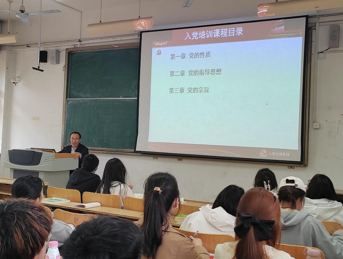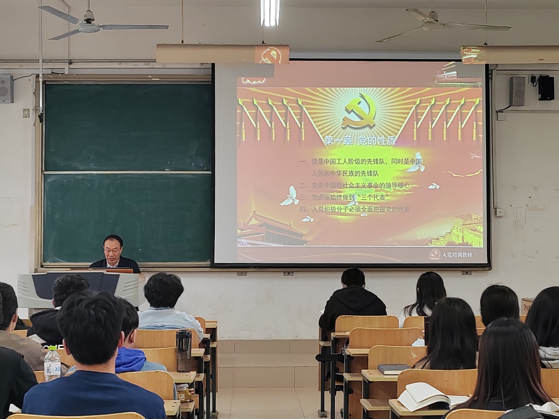 4月13日,物电学院党总支书记贺志波在天一楼7105教室为入党积极分子培训班开讲第一课。