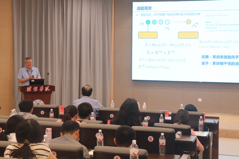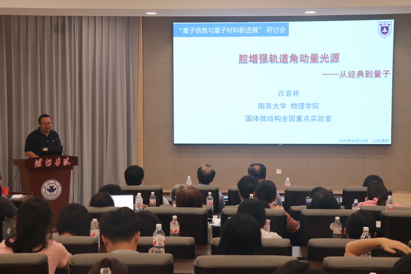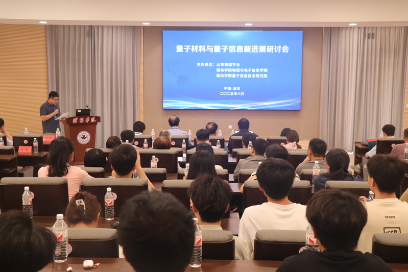 量子材料与量子信息新进展研讨会在知新楼报告厅隆重举行,来自省内外高校知名专家、学者,行业与企业人员及物电学院师生代表120余人参加会议。会上,山东物理学会常务副理事长、山东大学教授张承琚发表致辞。南京大学张利剑教授、华东师范大学刘胜帅教授,南京大学汪喜林教授,上海大学曹桂新教授,曲阜师范大学满忠晓教授,中国海洋大学王兆明教授,济南量子技术研究院王东周研究员等专家依次结合自身研究方向与研究成果作专题学术报告,现场气氛热烈,学术交流氛围浓厚。