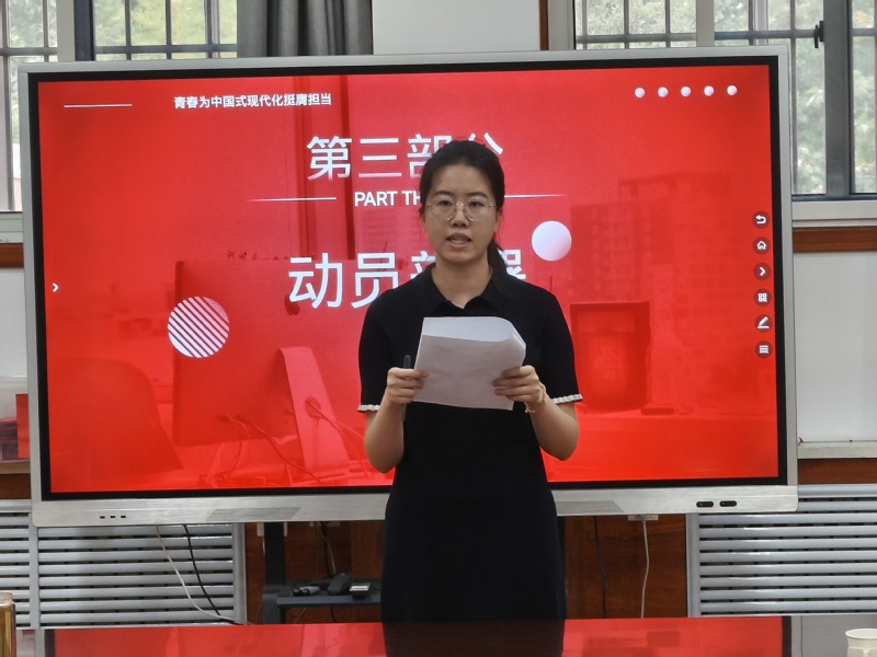 于尔河在致辞中介绍了学院本次暑期“三下乡”社会实践活动的意义,从点亮理想之灯、笃立鸿鹄之志、激扬青春梦想三个方面提出希望,鼓励队员们切身感知社会、关注家乡发展、热心服务群众,以社会实践为平台,书写无悔的青春篇章。优秀学生代表李莹上台发言,分享了参与社会实践的经验和感悟。团委副书记李玉婧从接地气、用心做、善宣传、重安全等四个方面对了本次暑假“三下乡”社会实践活动进行了总体动员部署,强调“三下乡”活动不仅是学生深入基层、了解社会的宝贵机会,更是高校服务社会、助力乡村振兴的责任担当。最后,党委副书记于尔河为重点队伍代表授旗。