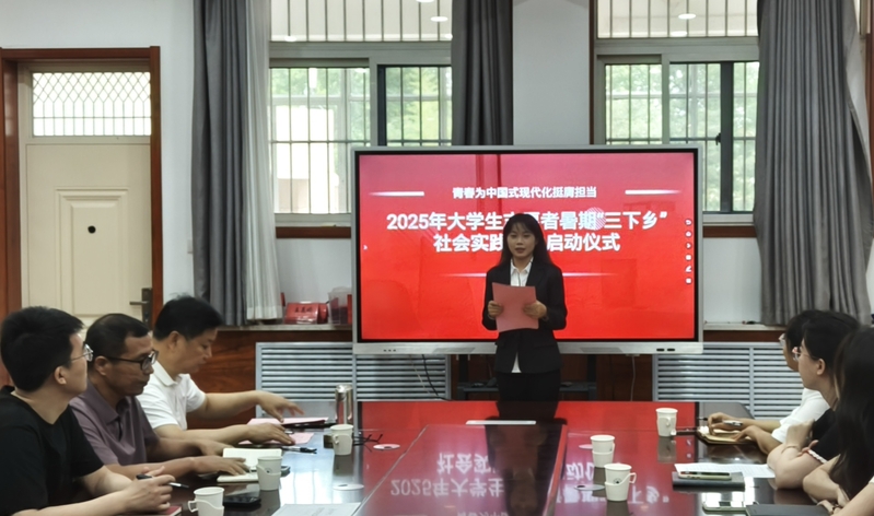为深入学习宣传贯彻党的二十大和党的二十届三中全会精神,深入领会落实习近平总书记关于青年工作的重要思想,引导和帮助广大青年学生在与现实相结合的“大思政课”中“受教育、长才干、 作贡献”,6月19日,物电学院在明正楼5205会议室举行2025年暑假“三下乡”社会实践部活动启动仪式,学院党委副书记于尔河、学生工作办公室主任金波昌、学生工作办公室副主任王树森、团委副书记李玉婧、各指导教师及社会实践队伍代表等师生参会。