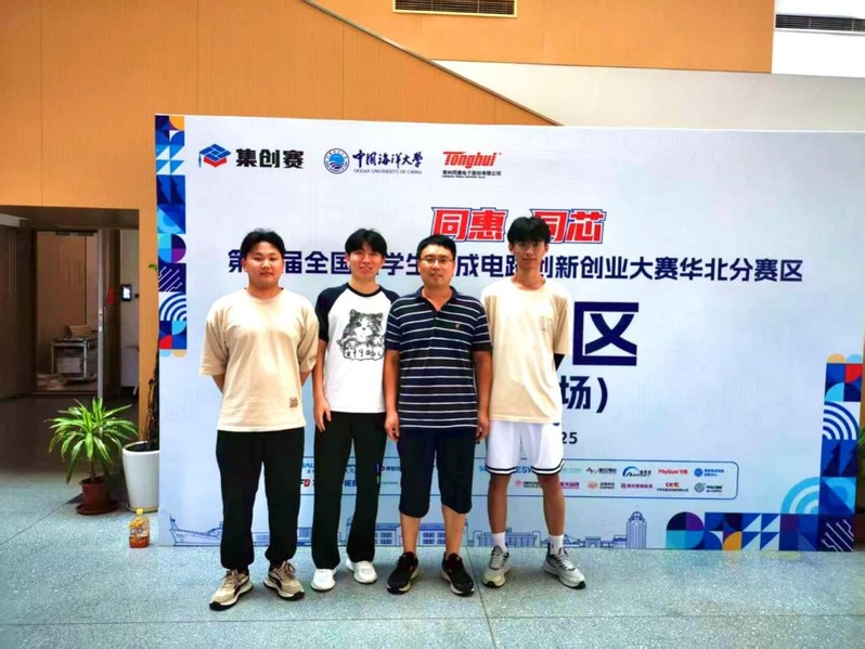 2025年7月23日-25日,第九届全国大学生集成电路创新创业大赛华北赛区决赛在中国海洋大学顺利举行。物电学院2022级电子科学与技术专业学生程华东、刘洋、高振凯三名同学组成的代表队在本届赛事中荣获第九届全国大学生集成电路创新创业大赛奥施特杯华北分赛区三等奖。